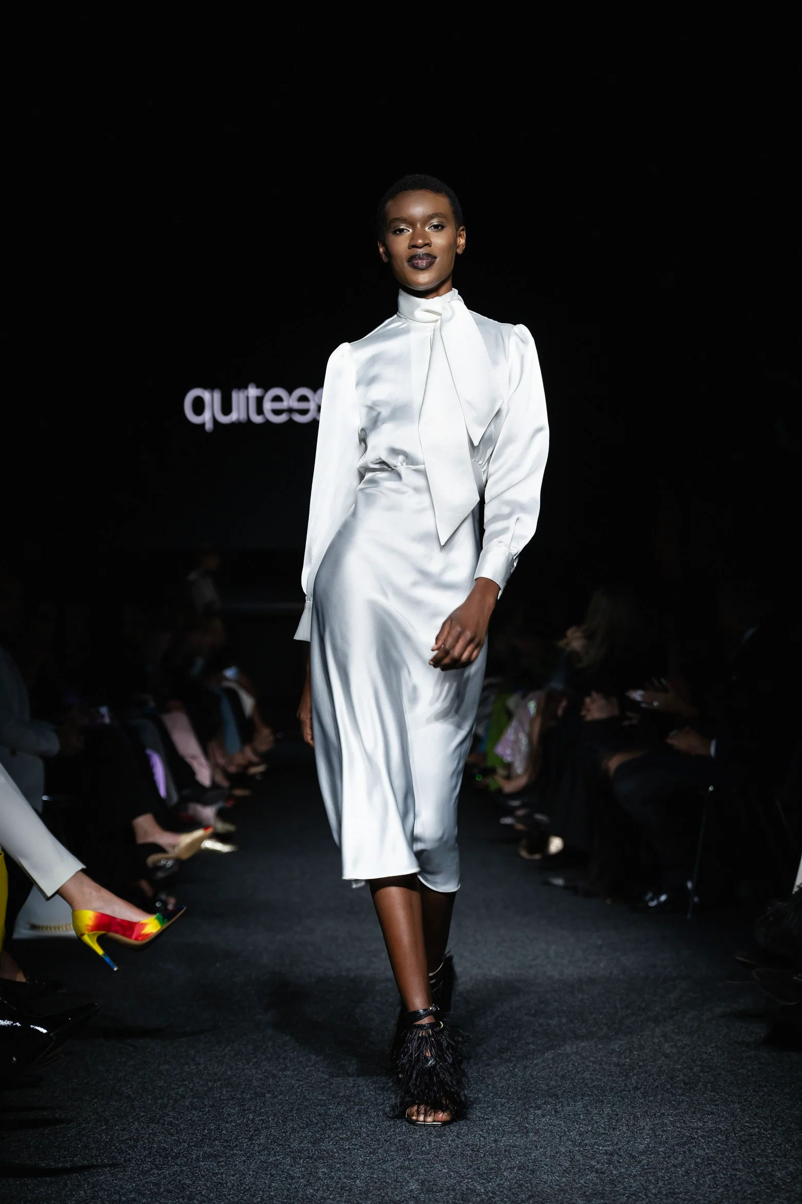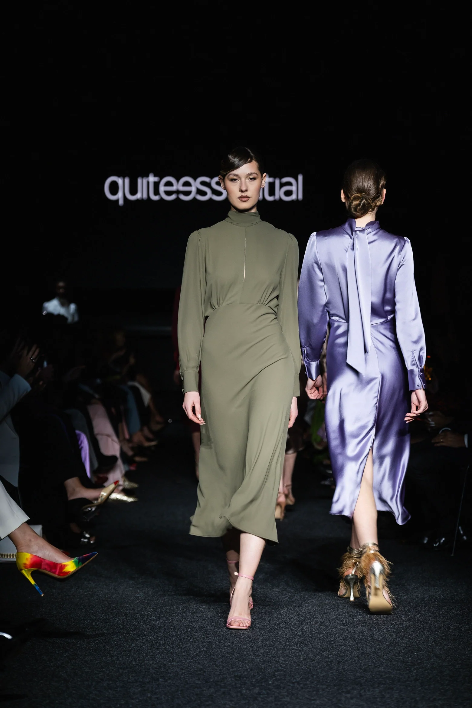 Quiteessential è un marchio che celebra l’eleganza femminile attraverso linee fluide e monocromatiche ma dal taglio sempre chic e super femminile, spesso con un tocco retrò.