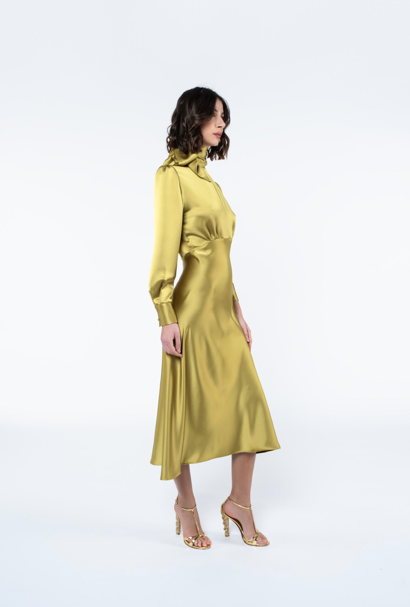 L'abito Claudia midi è un'icona del nostro brand. Un abito dall'eleganza seducente, caratterizzato da una fessura verticale sul décolleté e un delicato nastro al collo. Disponibile in raso satinato per una lucentezza raffinata.