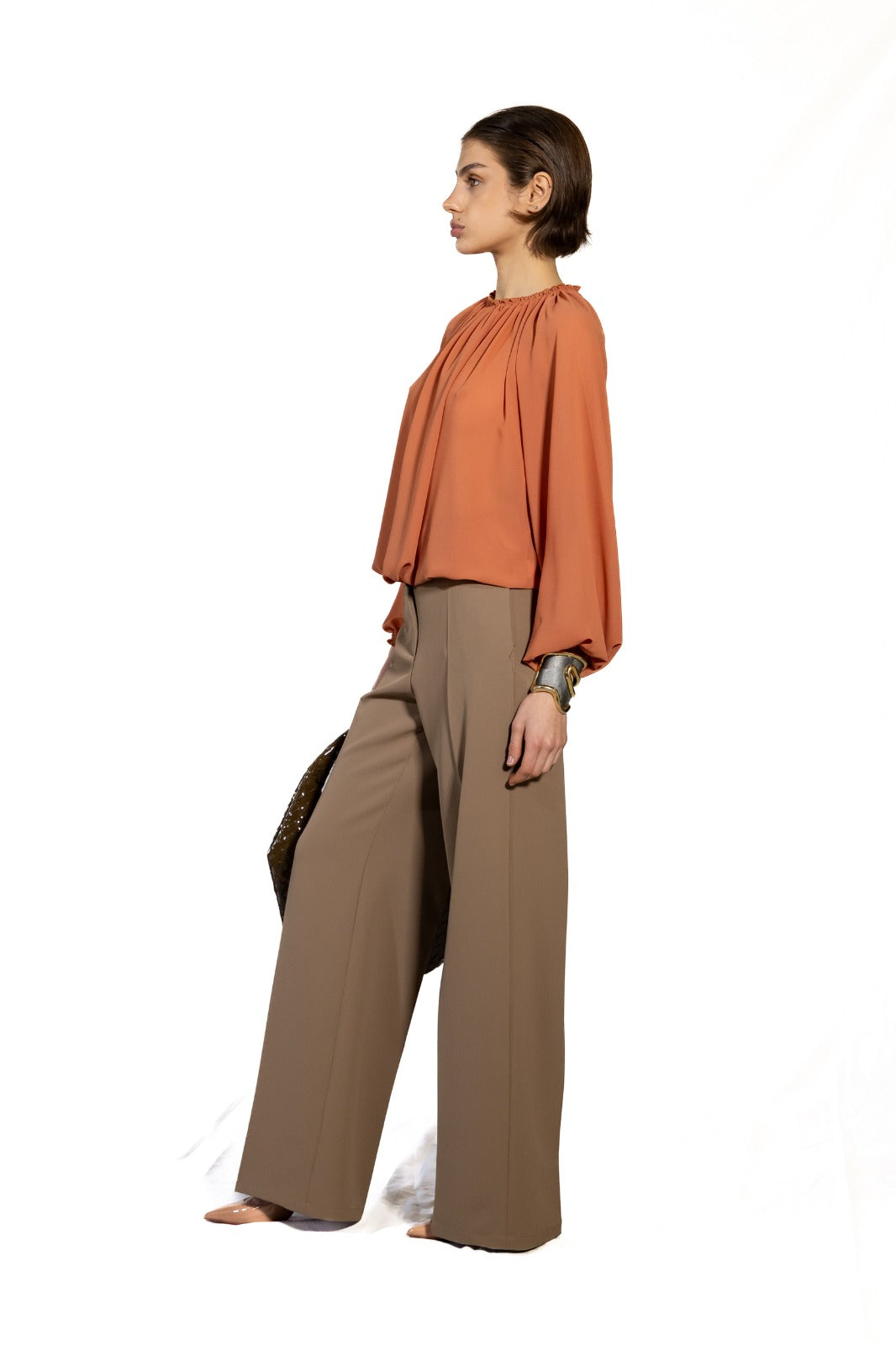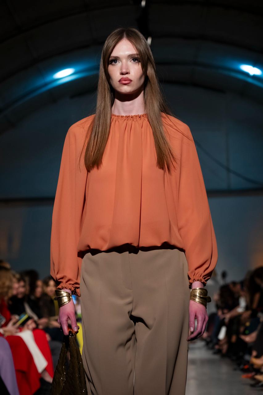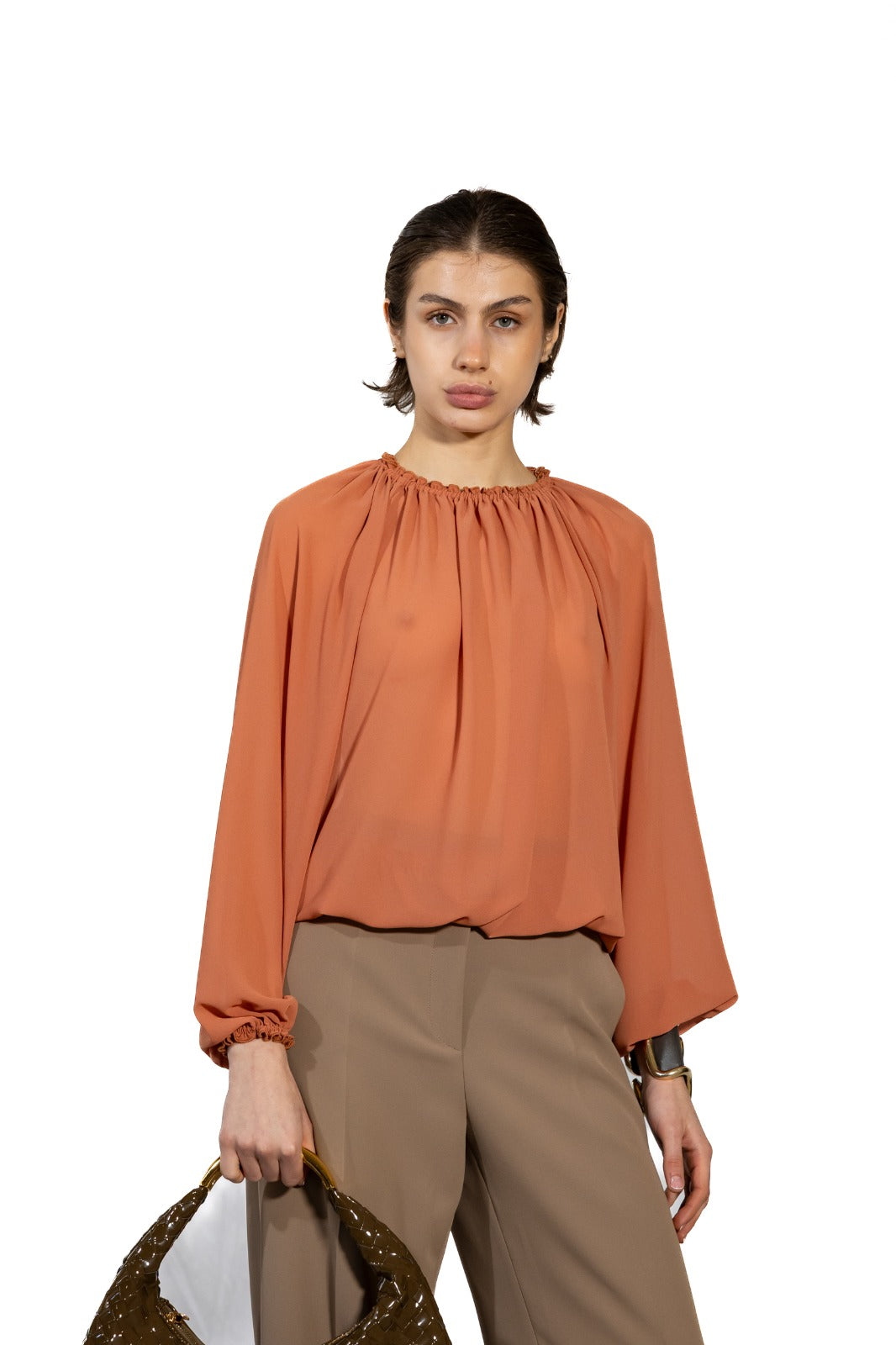 La Blusa Maggie è un capo elegante e versatile realizzato in morbido tessuto georgette. Il design ampio garantisce comfort e libertà di movimento, mentre i dettagli raffinati come l'arriccio alle finiture dei polsi e del collo aggiungono un tocco di sofisticatezza. Perfetta per occasioni casual o più formali, questa blusa si abbina facilmente con pantaloni o gonne, diventando un elemento essenziale del guardaroba.