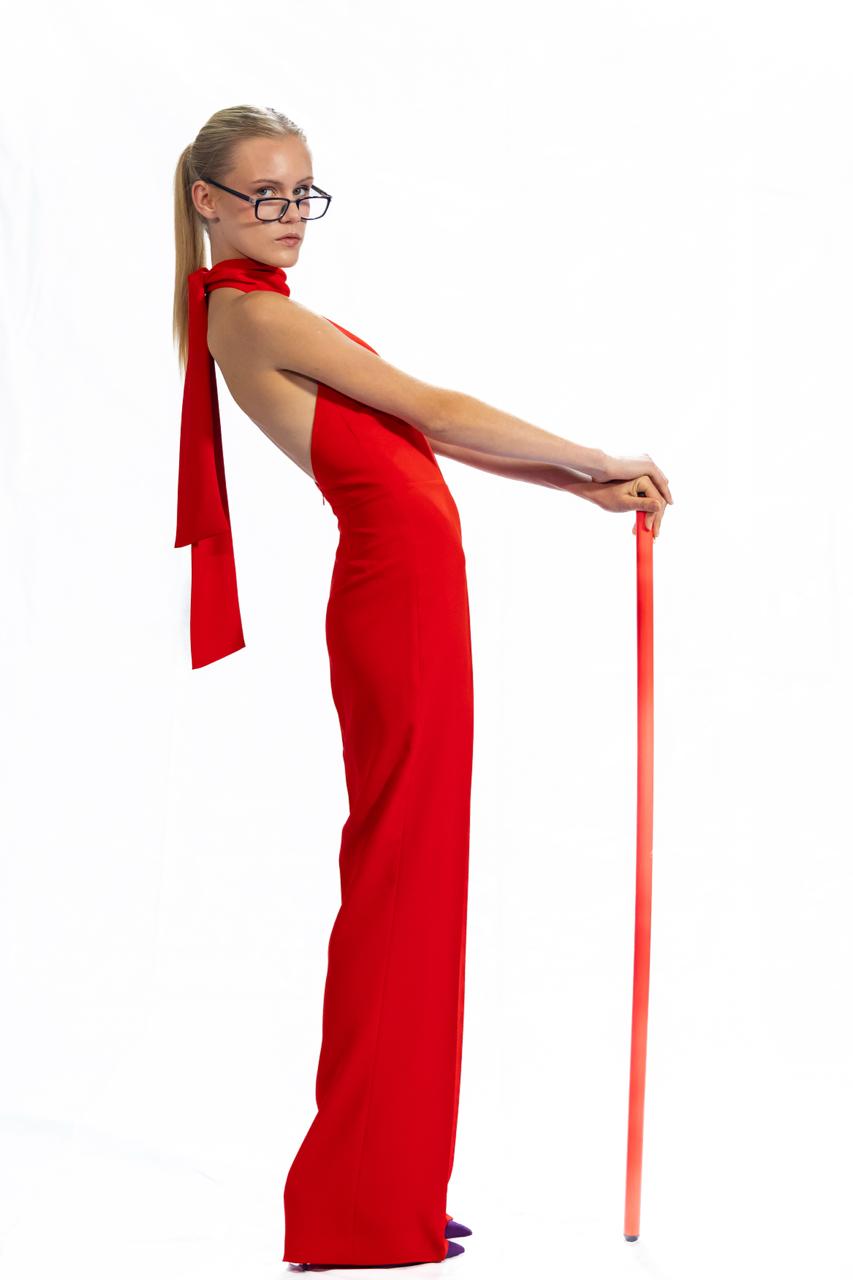 Jumpsuit Nico: eleganza minimalista con scollo alla americana e schiena completamente scoperta. Un capo sofisticato che gioca con il contrasto tra la semplicità della linea frontale e l'audacia del retro esposto. Perfetto per occasioni speciali, cene eleganti o serate che richiedono un tocco di sensualità.