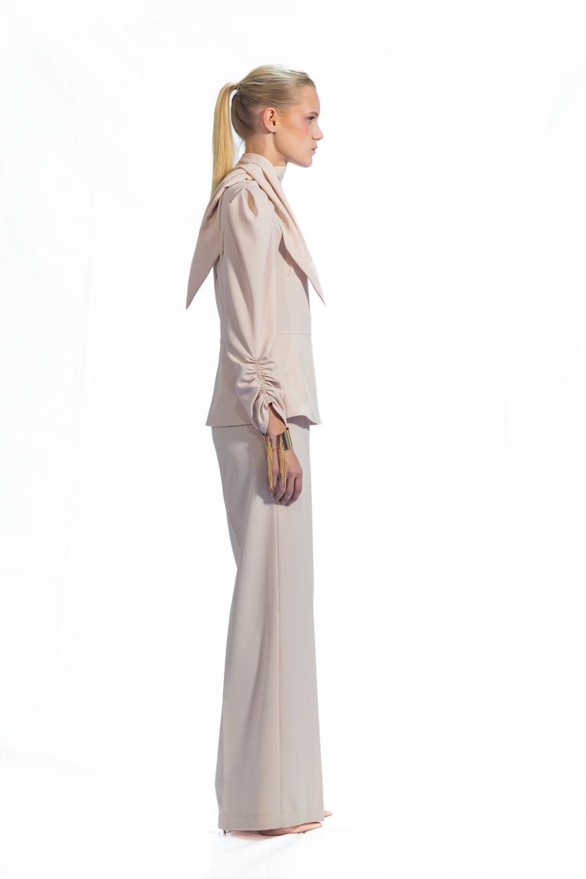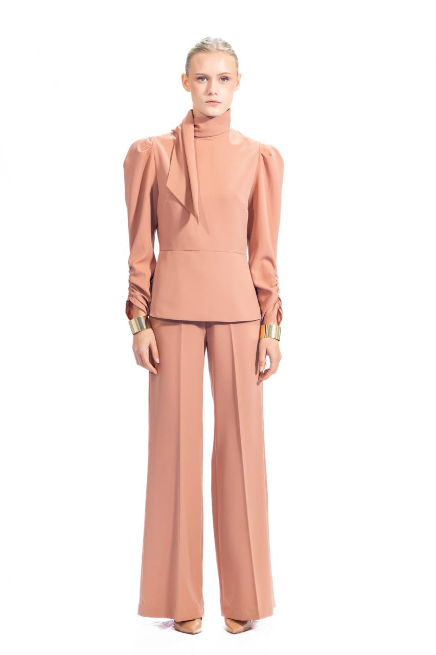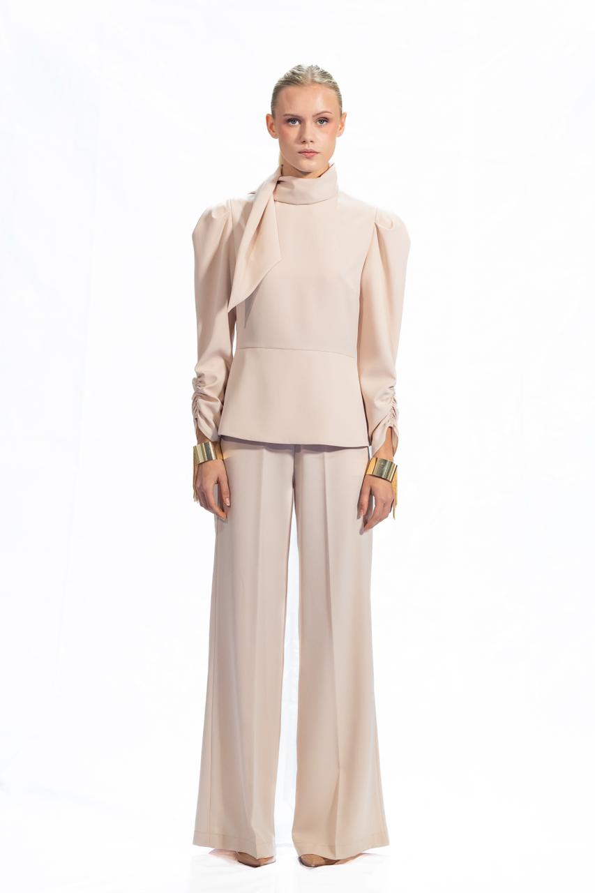 Pantalone flair con zip laterale che mantiene il davanti pulito e lineare. Piccolo elastico sul retro garantisce un fitting perfetto e confortevole, adattandosi naturalmente al corpo. Un capo versatile che unisce eleganza e praticità, ideale per chi ricerca silhouette sofisticate senza compromessi sul comfort.